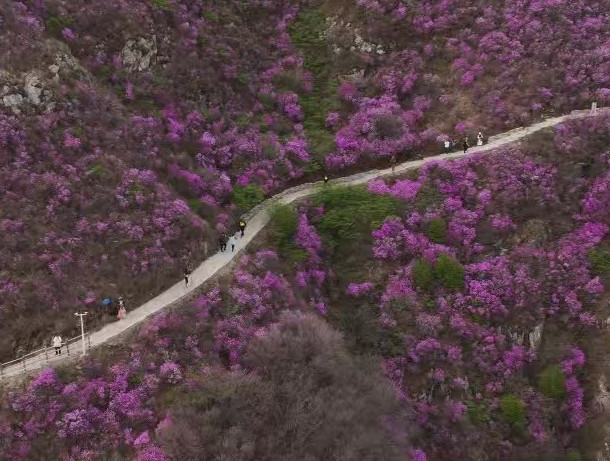 4月12日,大黑山杜鹃坡逐渐步入盛花期,主峰西面侧峰下有一处被称为“小杜鹃坡”的山坡已提前迎来盛花期。满坡的野生杜鹃花花开成海,吸引大量市民游客前来赏花休闲。